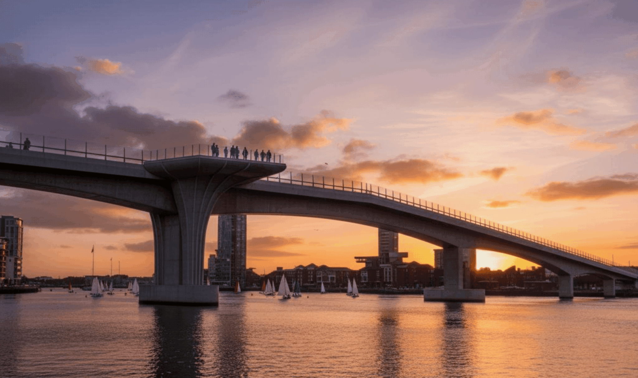 Great cities have iconic waterfronts, often defined by their innovative public spaces. The Snug Sky Deck cantilevers dramatically off the existing bridge, allowing people to stand out over the water enjoying impressive views of the city and its waterfront. This dynamic structure will cost effectively utilise technologies available in the local marine industry to create a much needed and unique new landmark for the city of Southampton.