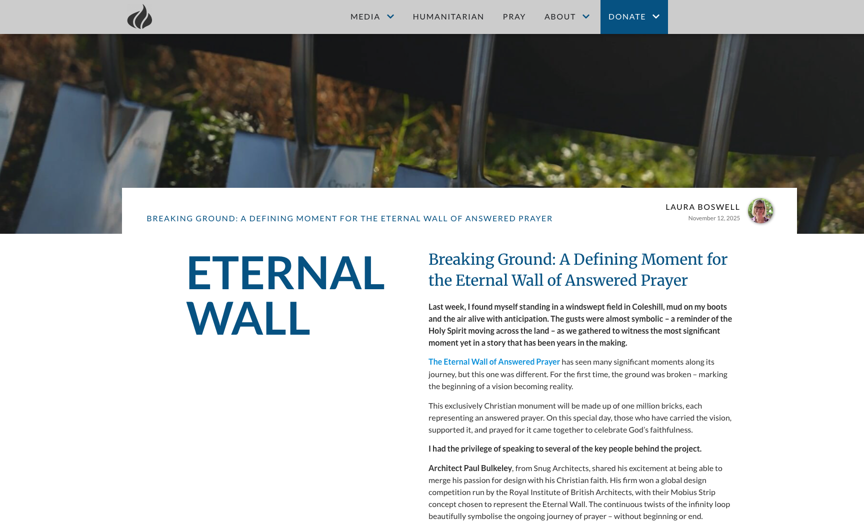 We have broken ground on the Eternal Wall of Answered Prayer. This is a significant milestone for this amazing project. Paul Bulkeley, our Design Director and the monuments designer, attended the event in Coleshill and was invited to speak about the design concept.