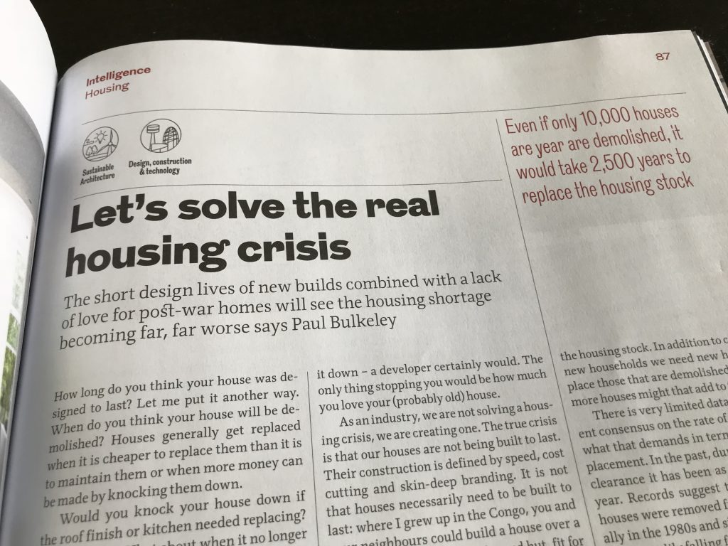 We were pleased to see an article on the housing crisis written by our founding director, Paul Bulkeley, published in this months RIBA Journal. The article raises serious issues that we hope both the industry and government will consider carefully. @RIBAJ