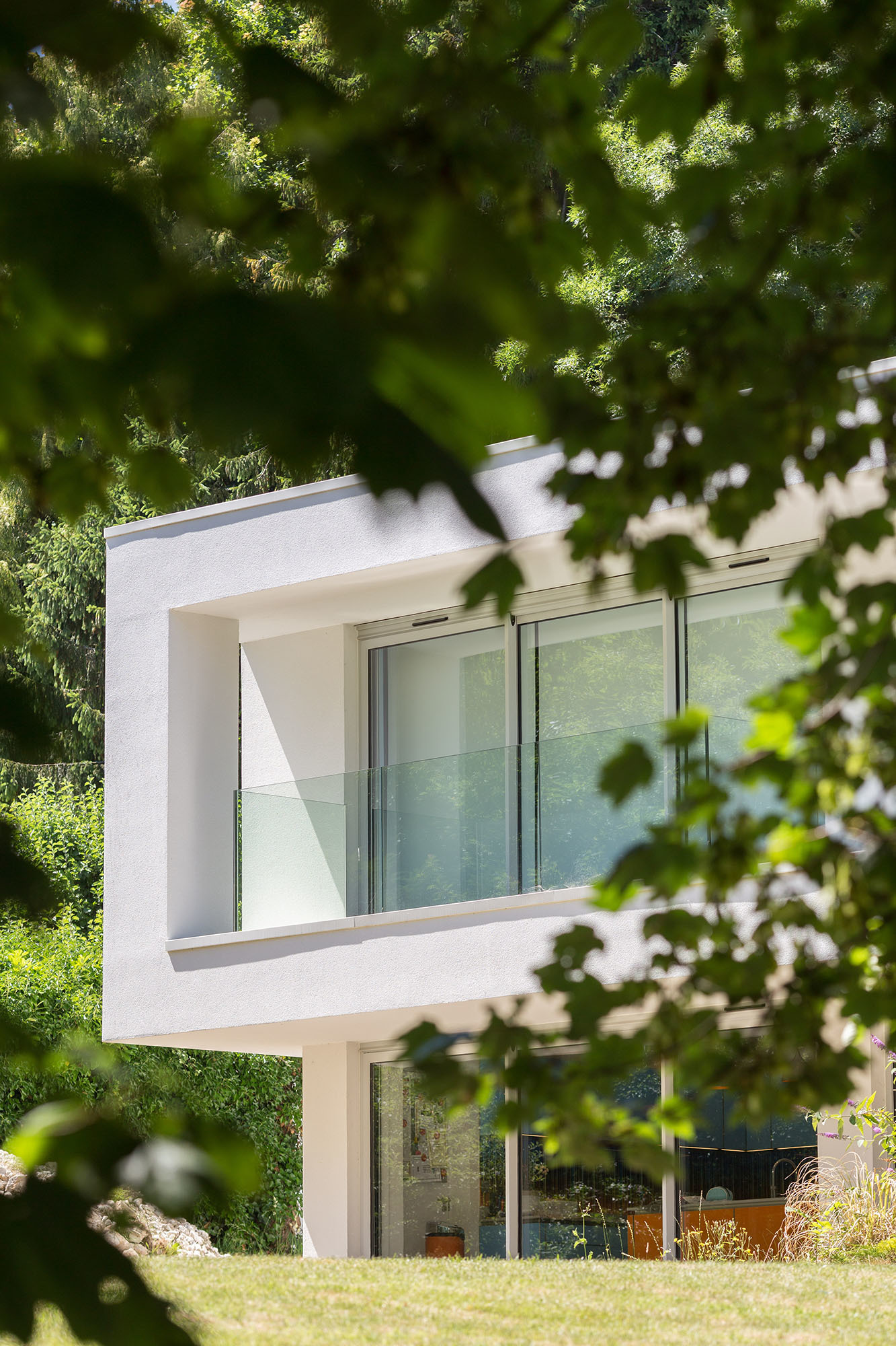 The project involved the complete rejuvenation of the existing property. The result is a contemporary modernist house with strong impact. The house celebrates its sylvan site with habitable rooms facing the garden. A large white 'picture frame' wraps the first floor creating first floor balconies and solar shading, as well as a powerful unifying aesthetic device that gives the house a strong identity.